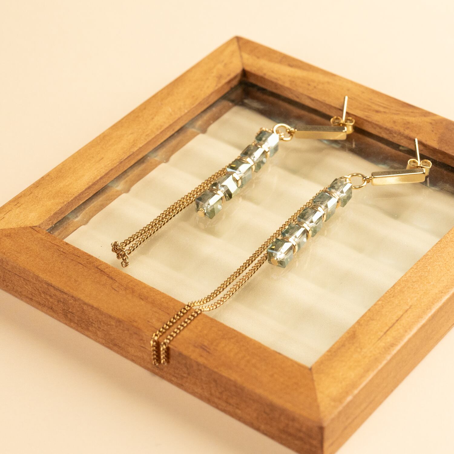 ストーンとチェーンの揺れるピアス